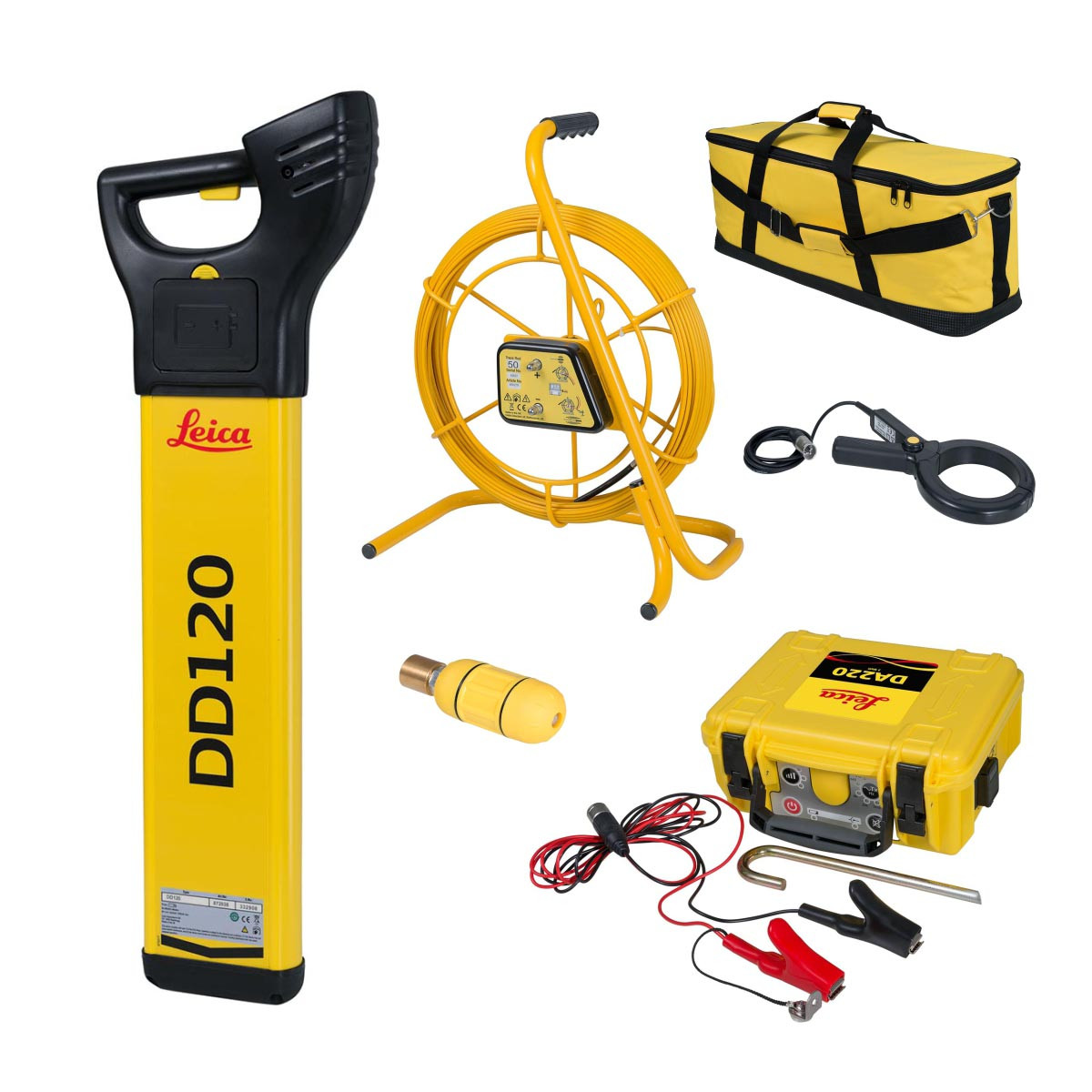 Le PACK de détection complet Leica DD120 (détecteur, générateur, pince émettrice, tige de repérage et sonde) vous permettra avec simplicité de repérer les cables électrique enterrés même hors tension ainsi que Les tuyaux en plastique, terre cuite ou béton grâce à la tige de repérage 50m. Cette dernière introduite dans une canalisation et branchée au générateur de signaux permettra un repérage fiable.